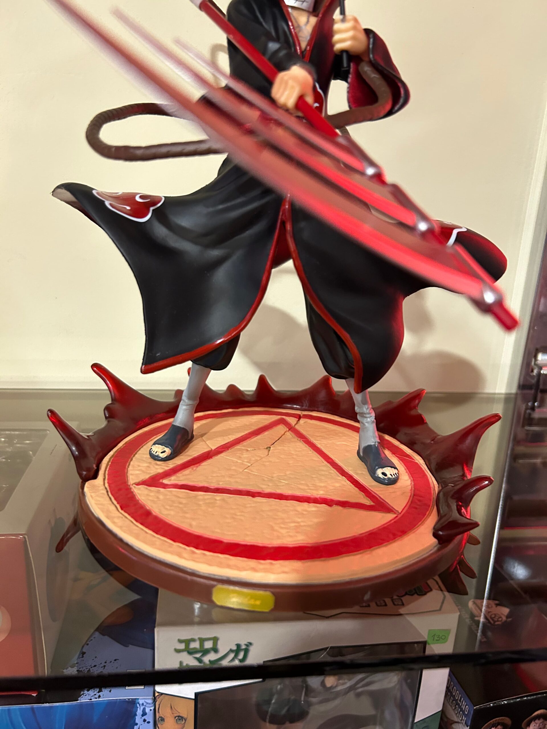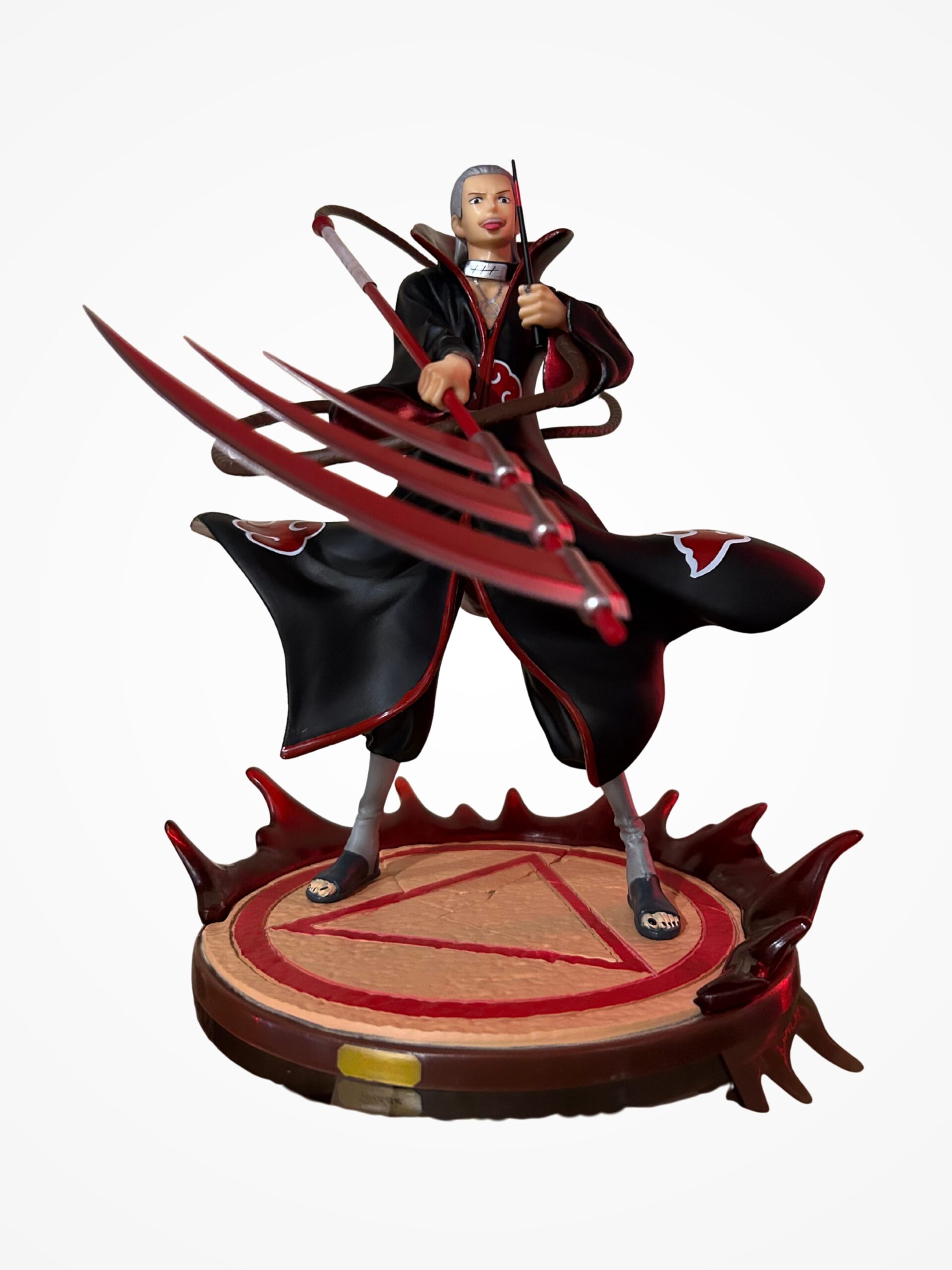 - Base Decorativa: Incluye una base con el símbolo triangular del ritual de Hidan para una exhibición estable.