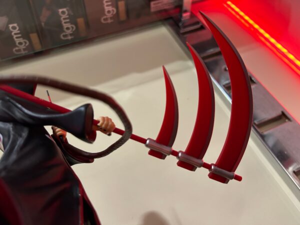 - Armamento Incluido: Viene equipado con la detallada Guadaña de Triple Hoja (Sanjin no Ōgama).