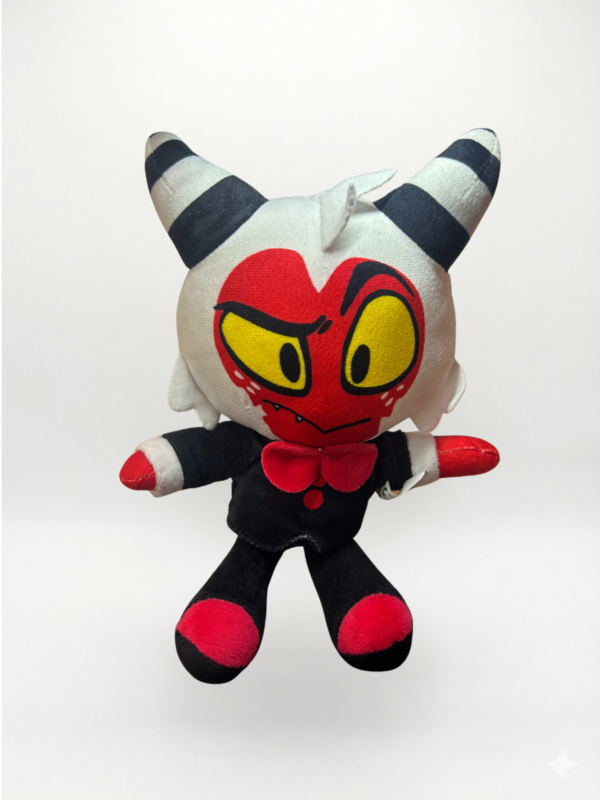 El miembro más meticuloso de Helluva Boss llega en una versión suave y coleccionable. Con acabados bordados y su vestimenta clásica de gala, es el compañero ideal para completar el dúo dinámico junto a Millie.