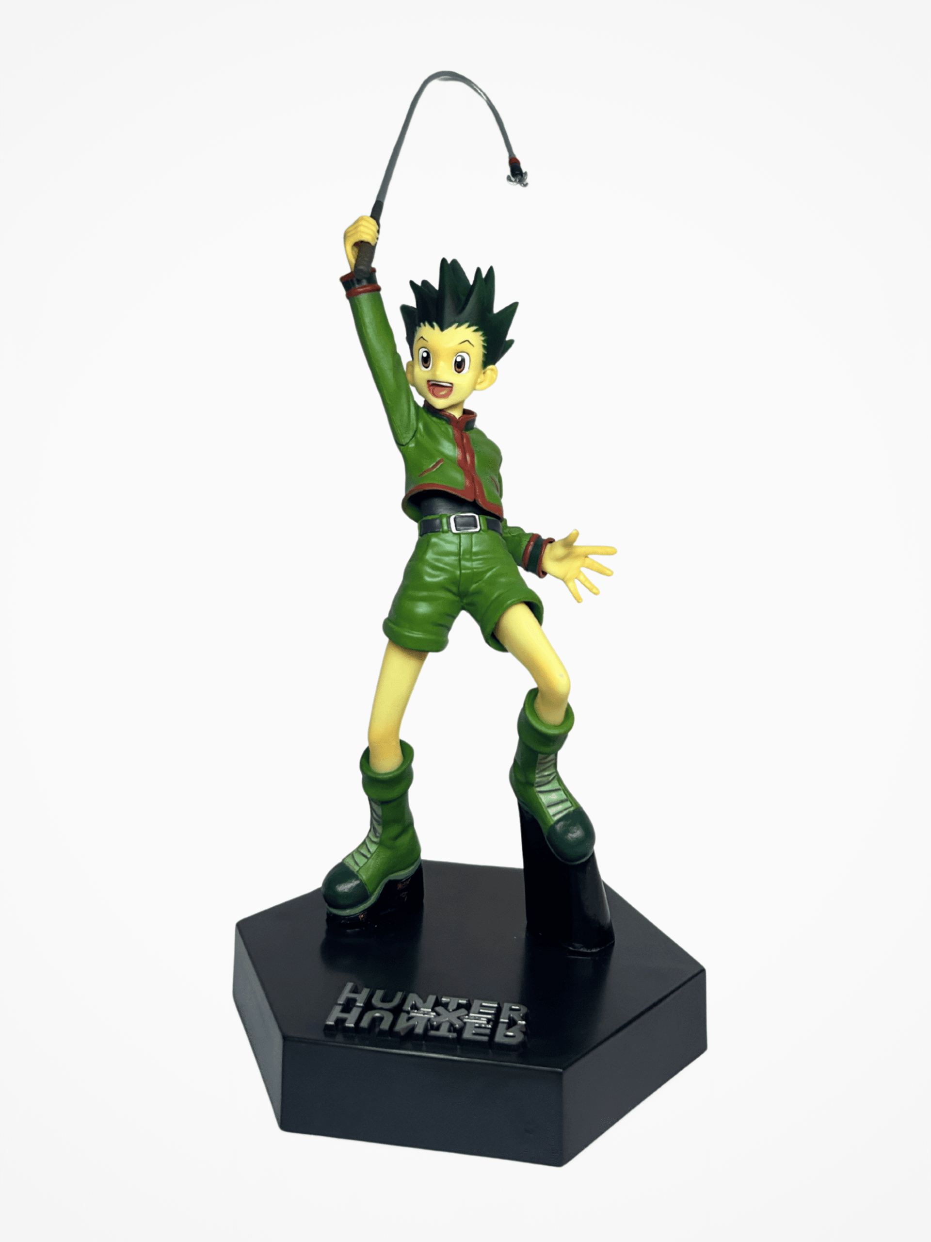 ¡Acompaña a Gon Freecss en su viaje para convertirse en un Cazador! Esta figura captura la esencia alegre y decidida del protagonista de Hunter x Hunter, equipado con su icónica caña de pescar. Una pieza clásica y esencial para cualquier colección de la obra de Yoshihiro Togashi.